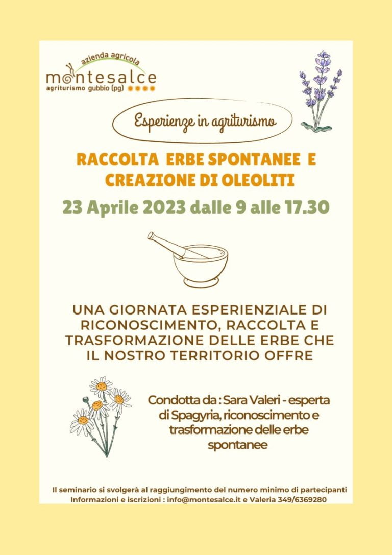 Raccolta e riconoscimento erbe spontanee, produzione del proprio oleolito